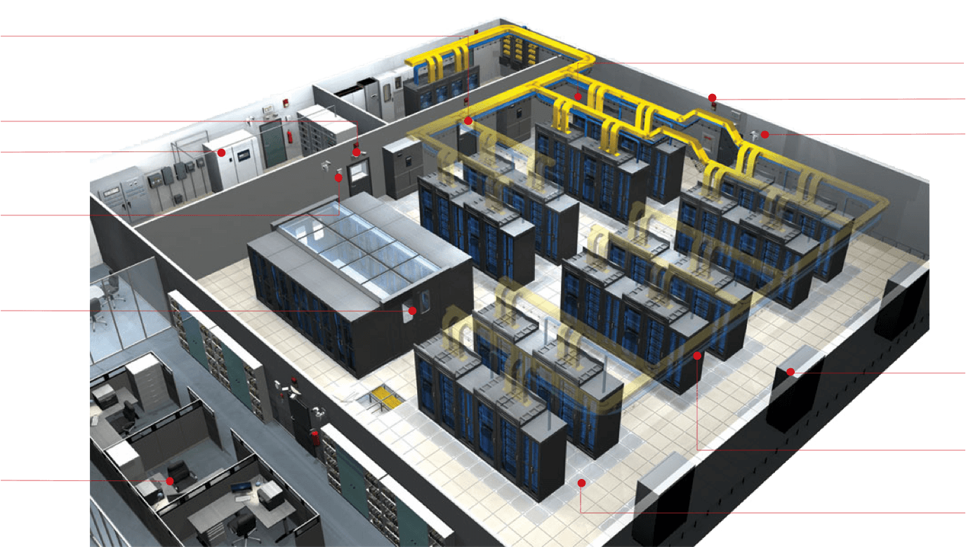 综合布线系统、UPS电源系统、空调新风系统、门禁系统、图像监控系统、消防报警系统、防雷接地系统、KVM切换系统等。