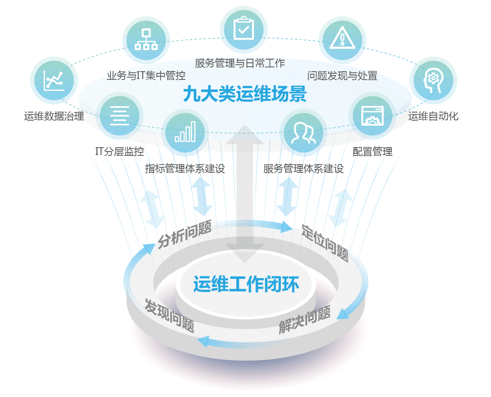 有效的整合了人力与技术服务资源,并对运维流程进行监督、管理、改进,使运维工作标准化、流程化、透明化、数字化,从而最大化的降低企业运营成本,提升企业核心竞争力